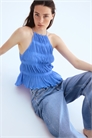 Топ из мягкого трикотажа с эластичными бретелями-спагетти и декоративной отделкой по всей поверхности для создания драпированного эффекта. Оверлочный край по подолу.
