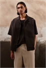 Рубашка с короткими рукавами из хлопкового трикотажа с курортным воротником, французским передом, нагрудным карманом на пуговицах, передом и прямым покроем. Регулярный крой для комфортной носки и классического силуэта.