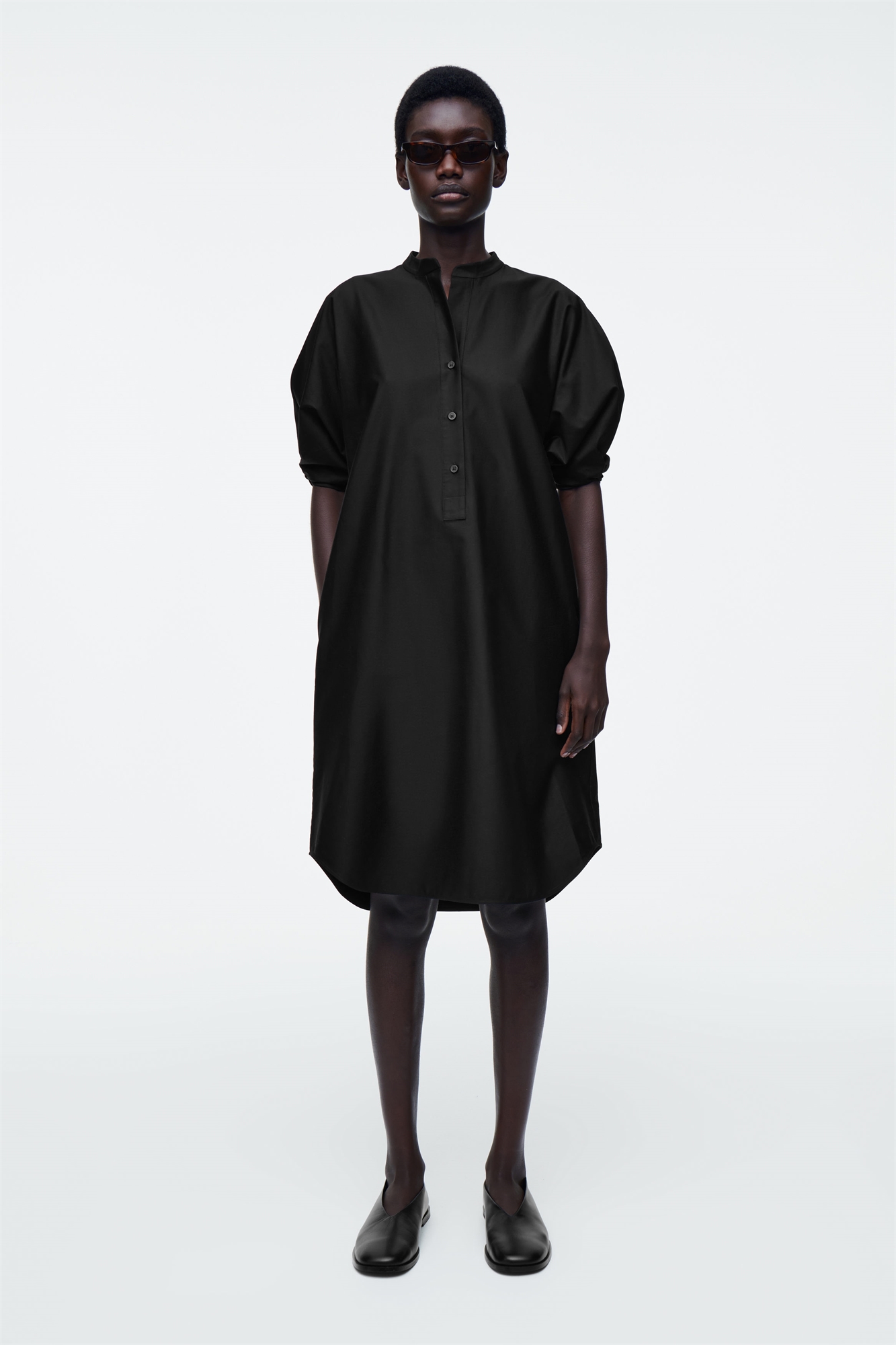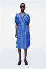 Это современное платье-рубашка с утягивающей талией и объемными рукавами с рюшами. Оно сшито из мягкого хлопка, имеет воротник "дедушка" и незаметные карманы в боковых швах. Регулярный крой Застежка на пуговицы Ткань: 100% хлопок. Без учета отделки / Машинная стирка Длина по спинке для размера EU 36 составляет 102,7 см / Модель носит размер EU 36