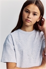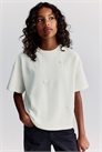 Свободная футболка из мягкого джерси с аппликацией из бисера спереди. Круглый вырез с ребристой отделкой и спущенные плечи.