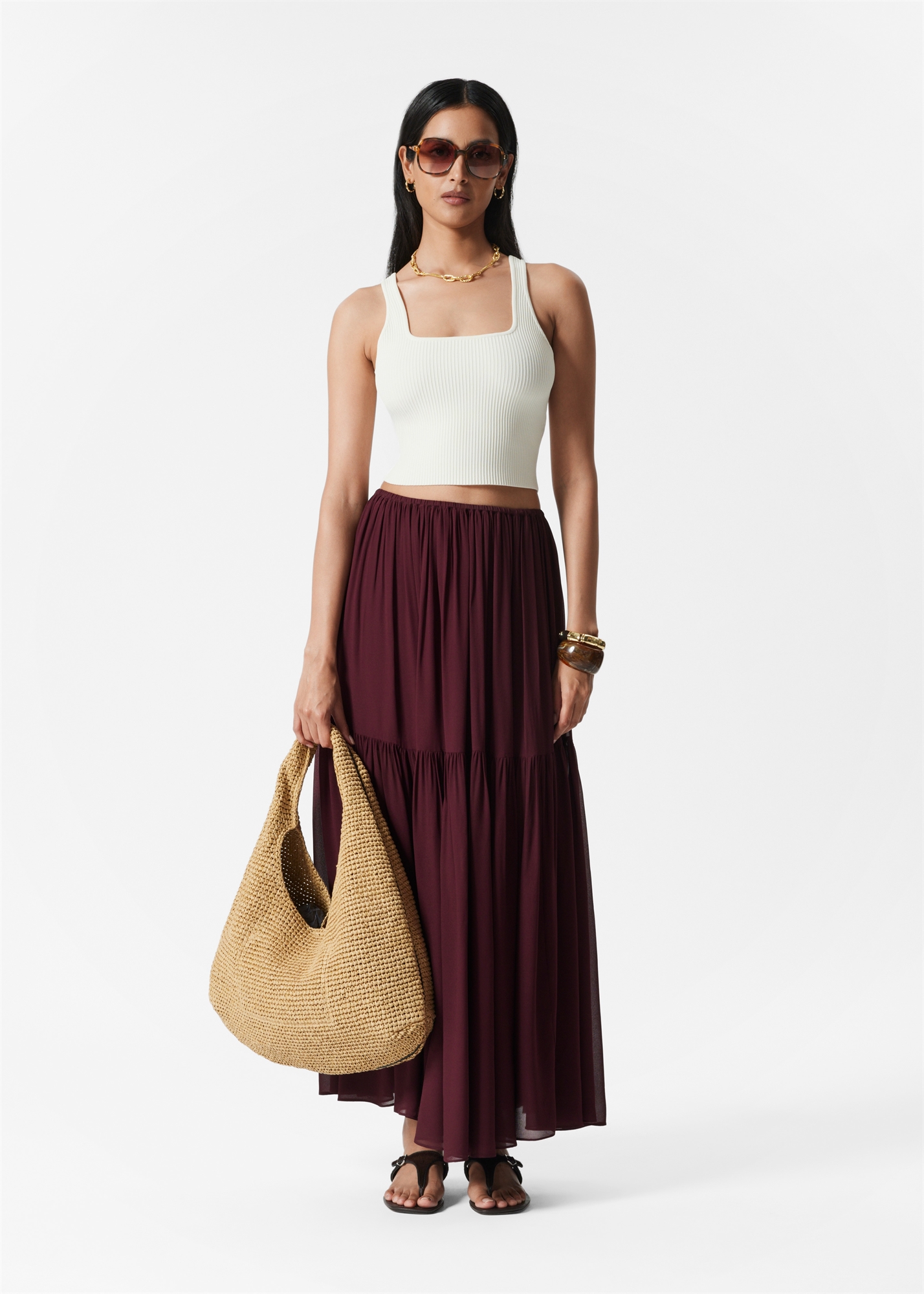 Эта юбка-макси, созданная для летних дней, сшита из воздушного шифона в мягком многоярусном силуэте. Собранные слои добавляют объем и движение, придавая ей легкость и богемность. Наденьте ее с майкой и босоножками с ремешками. Длина юбки: 96 см / 37,7 дюйма (EU 36 / UK 8 / US 4)