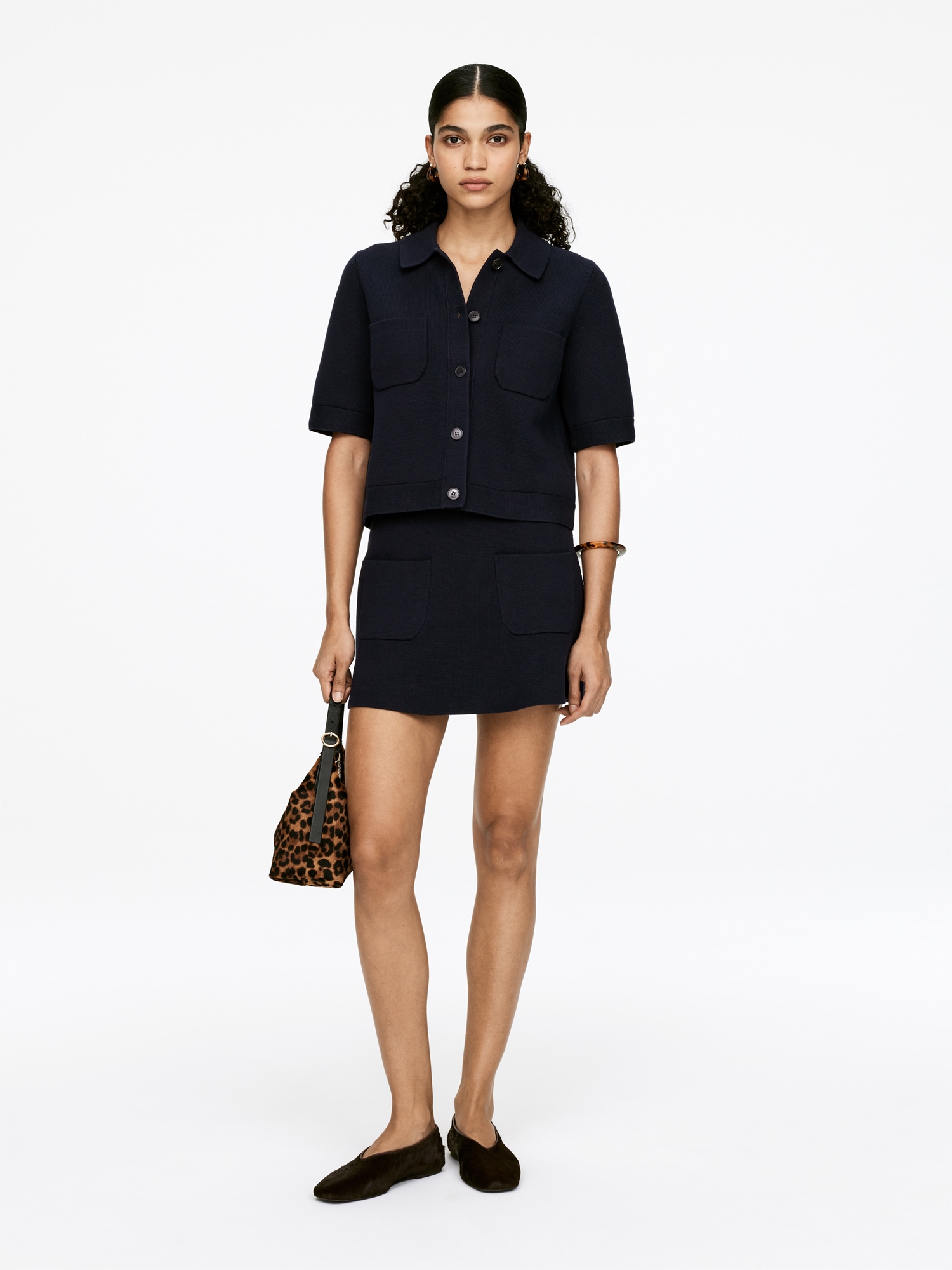 Трикотажная мини-юбка из хлопка с карманами спереди. Обычный крой.