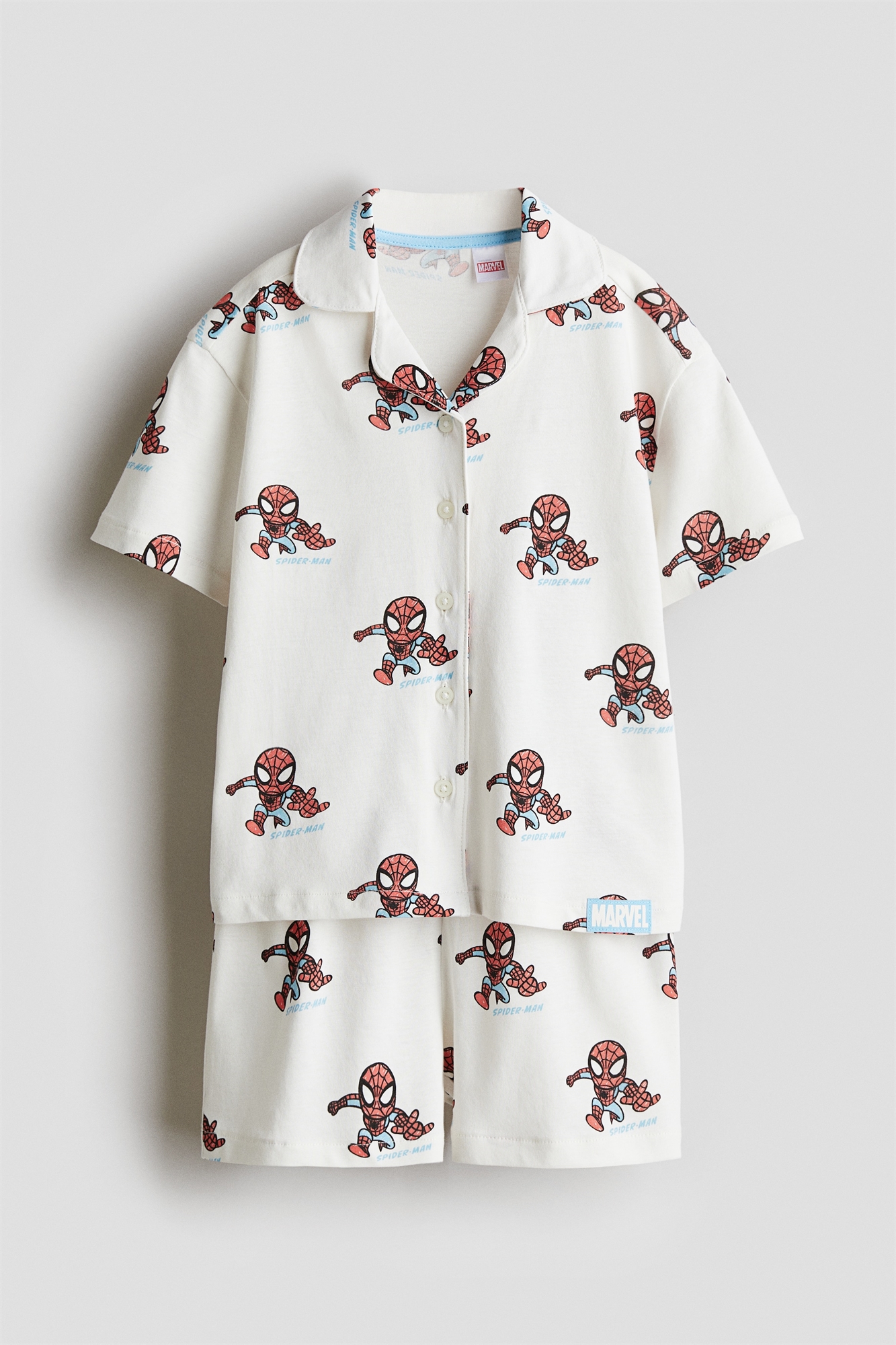Пижама с рубашкой и шортами из мягкого хлопкового джерси с рисунком. Рубашка с короткими рукавами, отложным воротником и пуговицами спереди. Шорты с эластичной талией.