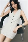 Короткая приталенная жилетка из тканого материала с глубоким V-образным вырезом и пуговицами спереди. Вытачки спереди для придания силуэту облегающего вида. На подкладке.
