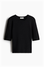 Короткая приталенная футболка из мягкого тонкого трикотажа с круглым вырезом и рукавами, заканчивающимися чуть выше локтей.