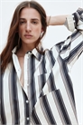 Свободная рубашка из хлопкового поплина с воротником и пуговицами спереди. Иг на спине, спущенные плечи и длинные рукава с регулируемыми пуговицами на манжетах и рукавной планкой с пуговицей. Открытый нагрудный карман и подол прямого кроя с загнутыми боковыми вентиляционными отверстиями.