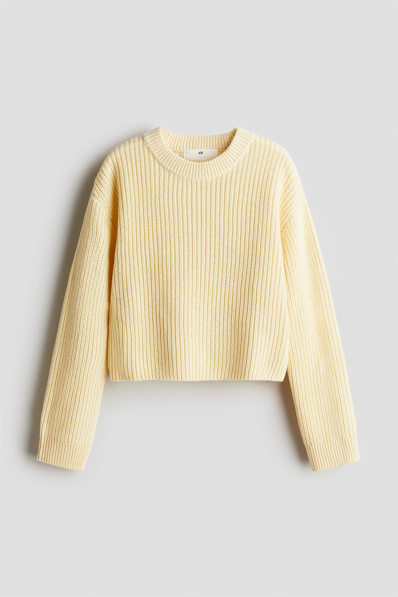 Джемпер из мягкого трикотажа, выполненного из смеси хлопка. Круглый вырез с ребристой отделкой, спущенные плечи и длинные рукава с манжетами в рубчик.