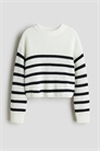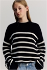 Джемпер из мягкого трикотажа, выполненного из смеси хлопка. Круглый вырез с ребристой отделкой, спущенные плечи и длинные рукава с манжетами в рубчик.
