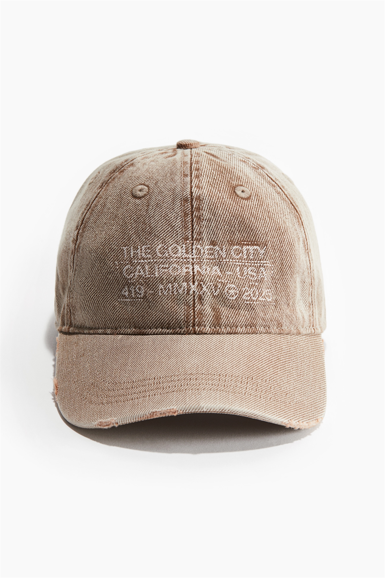 Кепка из хлопковой саржи с принтом спереди и регулируемым язычком и застежкой на крючок и петлю сзади. Хлопковый потник.