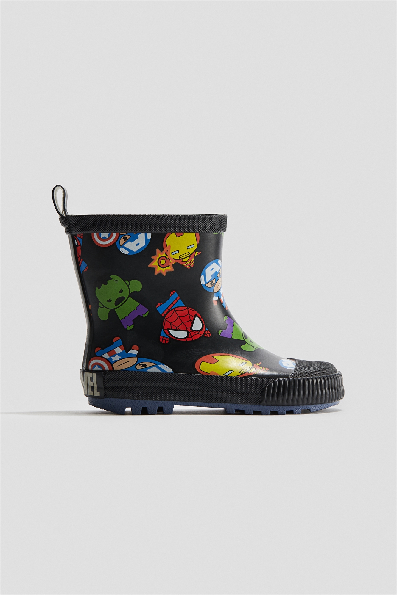 Принтованные вельветы для непромокаемых игр на открытом воздухе. Петля сзади и подкладка из микрофлиса. Подошва с рисунком.