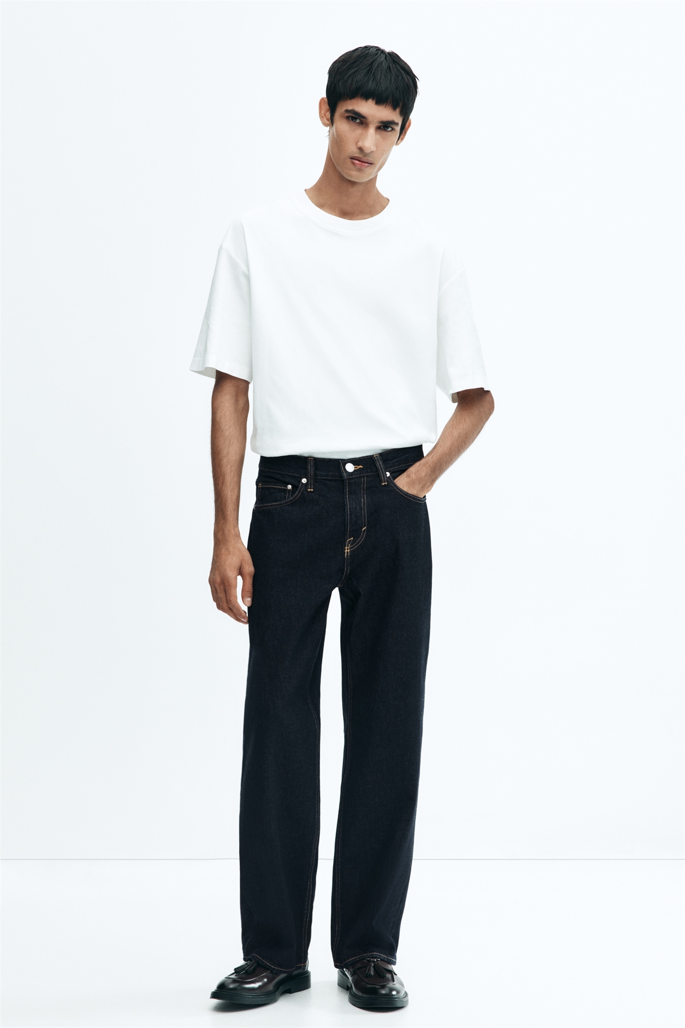 Джинсы с 5 карманами из жесткого хлопкового денима с прямыми штанинами и непринужденной посадкой от сиденья до подола с дополнительным пространством от бедра вниз. Регулярная талия и ширинка на молнии. Предназначены для повседневной носки.