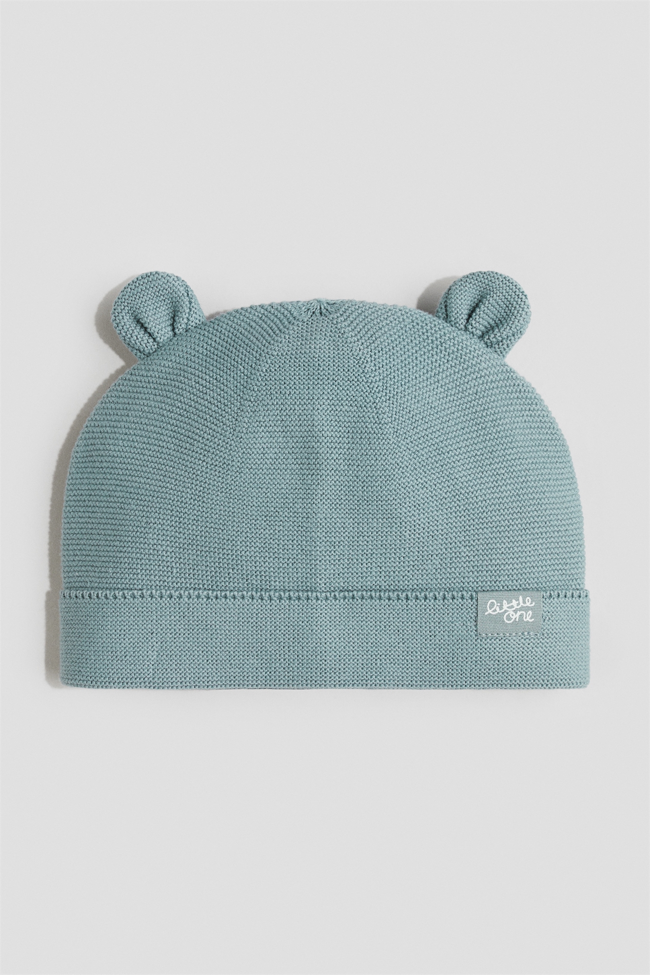 Пинетки из мягкого хлопка тонкой вязки с маленькими ушками и подвёрнутым подолом.