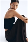 Юбка А-линии длиной до колен из мягко драпирующегося джерси с высокой талией и скрытой эластичной резинкой. Короткая нижняя юбка.
