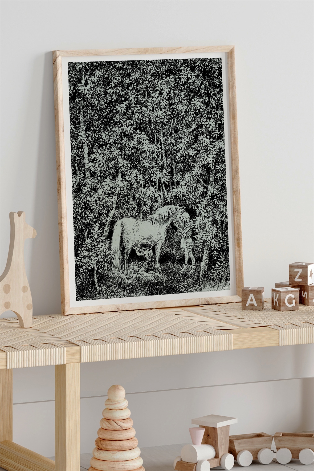 Украсьте комнату вашего ребенка волшебными иллюстрациями Илона Викланда из любимой сказки Астрид Линдгрен "Дочь разбойника Роня". Эти иллюстрации оживляют мир приключений и создают вдохновляющий фон для уютных рассказов и фантазий об отважной и авантюрной Роне. Идеально подходит для детей, которые любят волшебство природы и приключения!