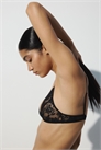 Мягкий бюстгальтер без проводов из кружева с регулируемыми бретелями и чашечками без подкладки, которые придают бюсту естественную форму и обеспечивают легкую поддержку. Узкая застежка на крючки и глазки сзади.