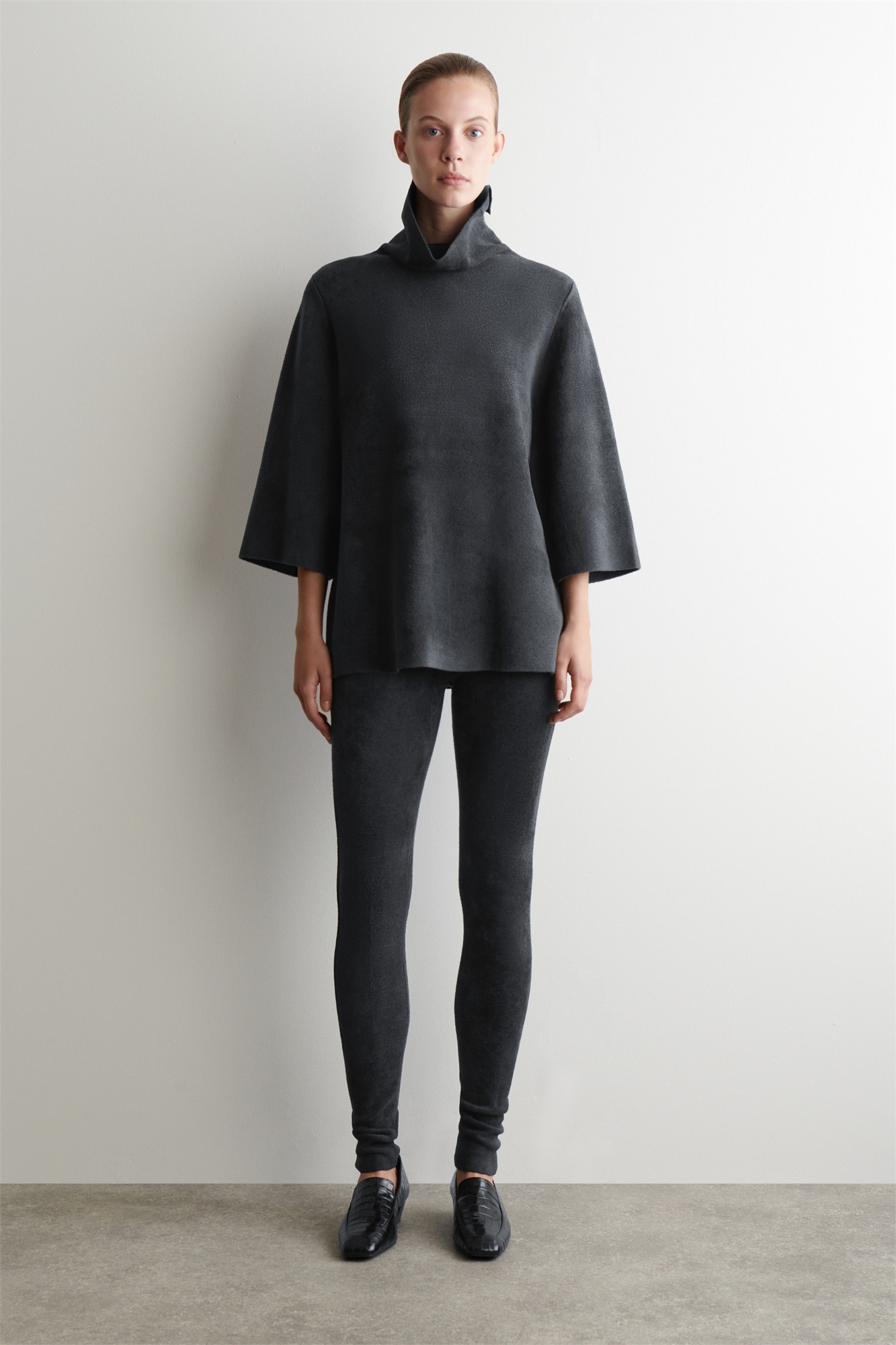 Осень-зима 2025 поднимает современный гардероб на новую высоту: воплощение спокойной уверенности. Эти леггинсы, выполненные из синели с двойной лицевой поверхностью, придают силуэту мягкость и роскошную материальность. Они имеют минимальный облегающий крой и могут быть с рюшами на лодыжках. Носите их в сочетании с подходящим джемпером. Узкий кройРегенерированный полиамид ECONYL® производится путем химической переработки отходов, таких как рыболовные сети, ковры и промышленные отходы, превращаются в сырье, а затем прядутся в пряжу ECONYL® Материал: 55% вискоза, 43% полиамид ECONYL®, 2% эластан. Без учета отделки / Машинная стирка Внутренняя длина ноги размера S составляет 80 см / Модель носит размер S