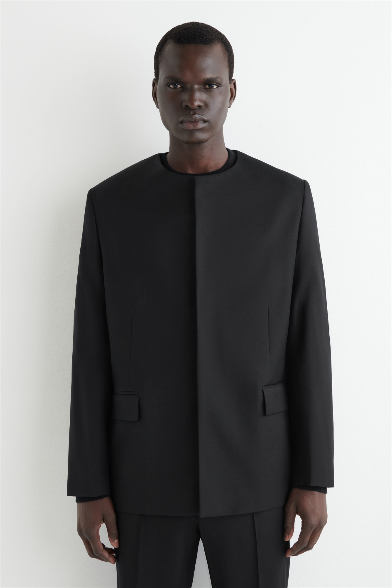 Осень Зима 2025 поднимает современный гардероб на новую высоту: воплощение спокойной уверенности. Этот блейзер без воротника, безупречно сшитый из легкой шерстяной ткани премиум-класса, имеет структурированные плечи, отложные карманы и вентиляционные отверстия сзади. Пуговицы скрыты, а петля для вешалки из гросгрейна является фирменным знаком капсулы. Подойдите к костюму с подходящими брюками. Обычный кройЗастежка на пуговицыВнутренний карманЭто изделие содержит шерстяное волокно Responsible Wool Standard TE-00047206 (RWS) с ферм, сертифицированных по требованиям к благополучию животных и управлению землей Оболочка: 100% шерсть RWS. Подкладка: 100% Naia™ ацетат целлюлозы. Без учета отделки / Сухая чистка Длина по спинке для размера EU 48 составляет 75,75 см / Модель носит размер EU 48