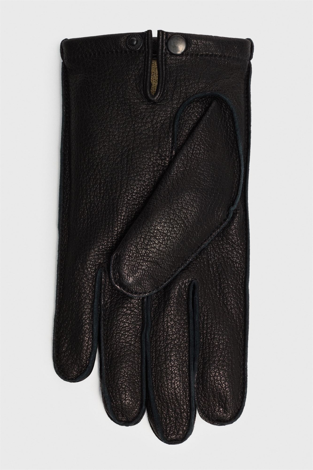 Перчатки из мягкой кожи с застежкой на запястьях для плотного прилегания. Подкладка из мягкого шерстяного бленда.