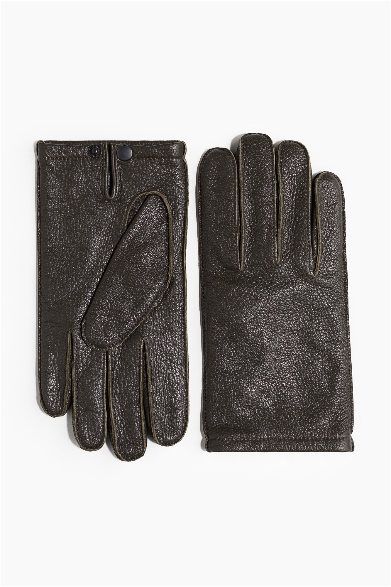 Перчатки из мягкой кожи с застежкой на запястьях для плотного прилегания. Подкладка из мягкого шерстяного бленда.