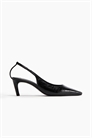 Босоножки с заостренным носком, закрытым каблуком и узким ремешком на щиколотке с эластичной вставкой с одной стороны. Атласная подкладка.