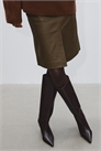 Сапоги с острым носком, узким каблуком и широким голенищем. Подкладка и стелька из джерси.