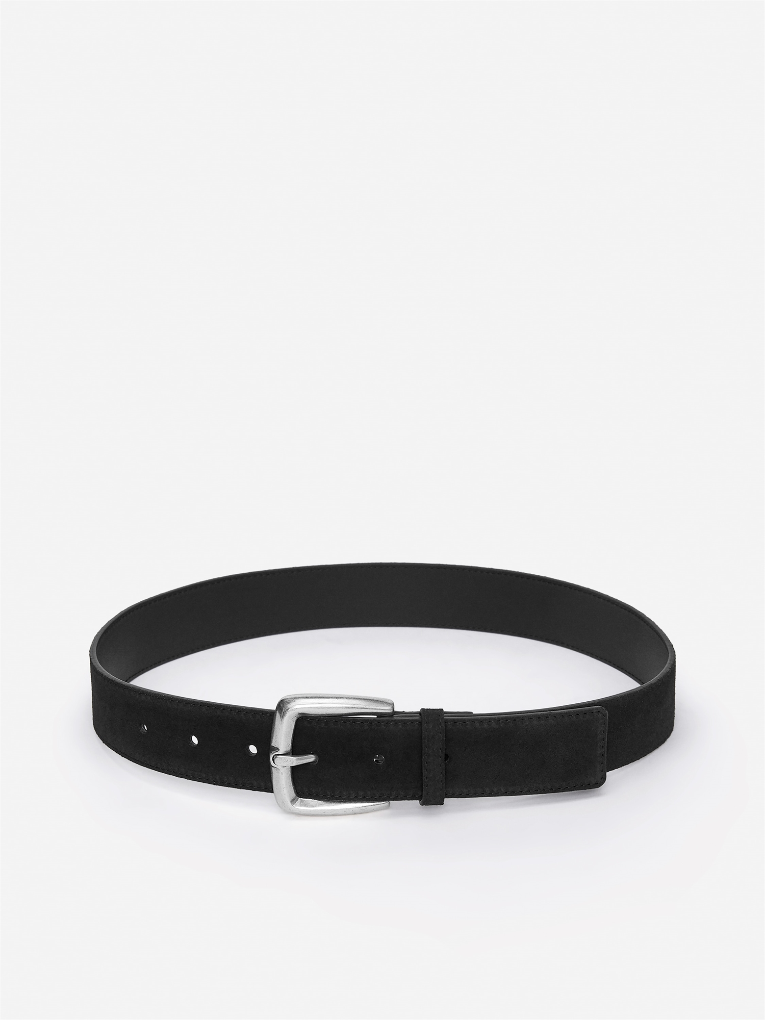 Ремень из замши, прошедшей процесс дубления без использования хрома. Пряжка с серебряной отделкой. Ширина 4 см.