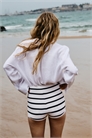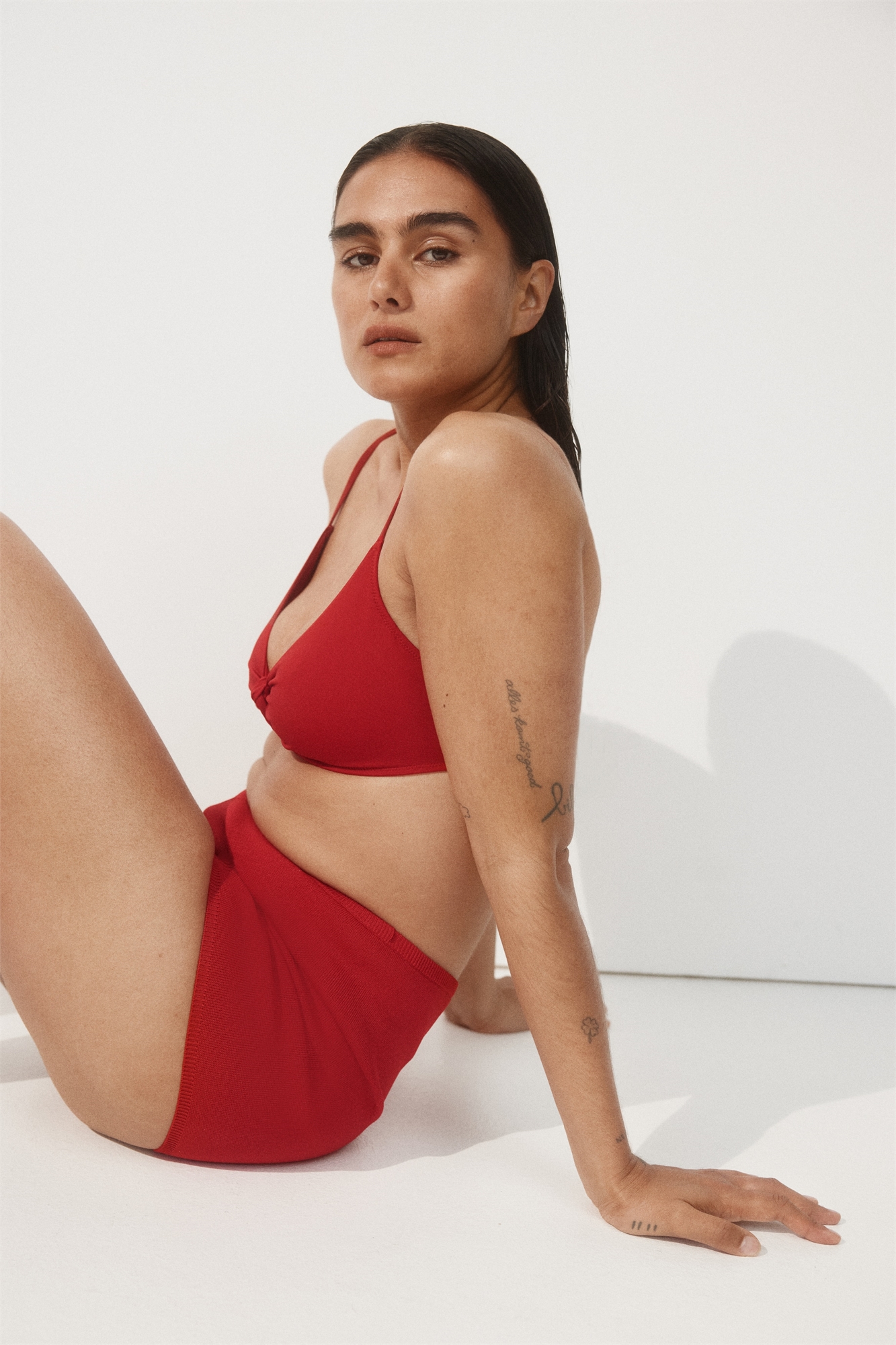 Облегающие пляжные шорты из тонкого трикотажа с эластичным поясом и ребристыми краями.