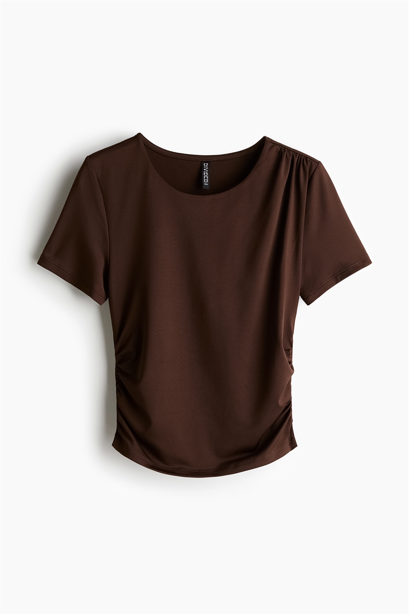 Приталенная футболка из джерси-стрейч со сборками на плечах и по бокам талии, создающими эффект драпировки.