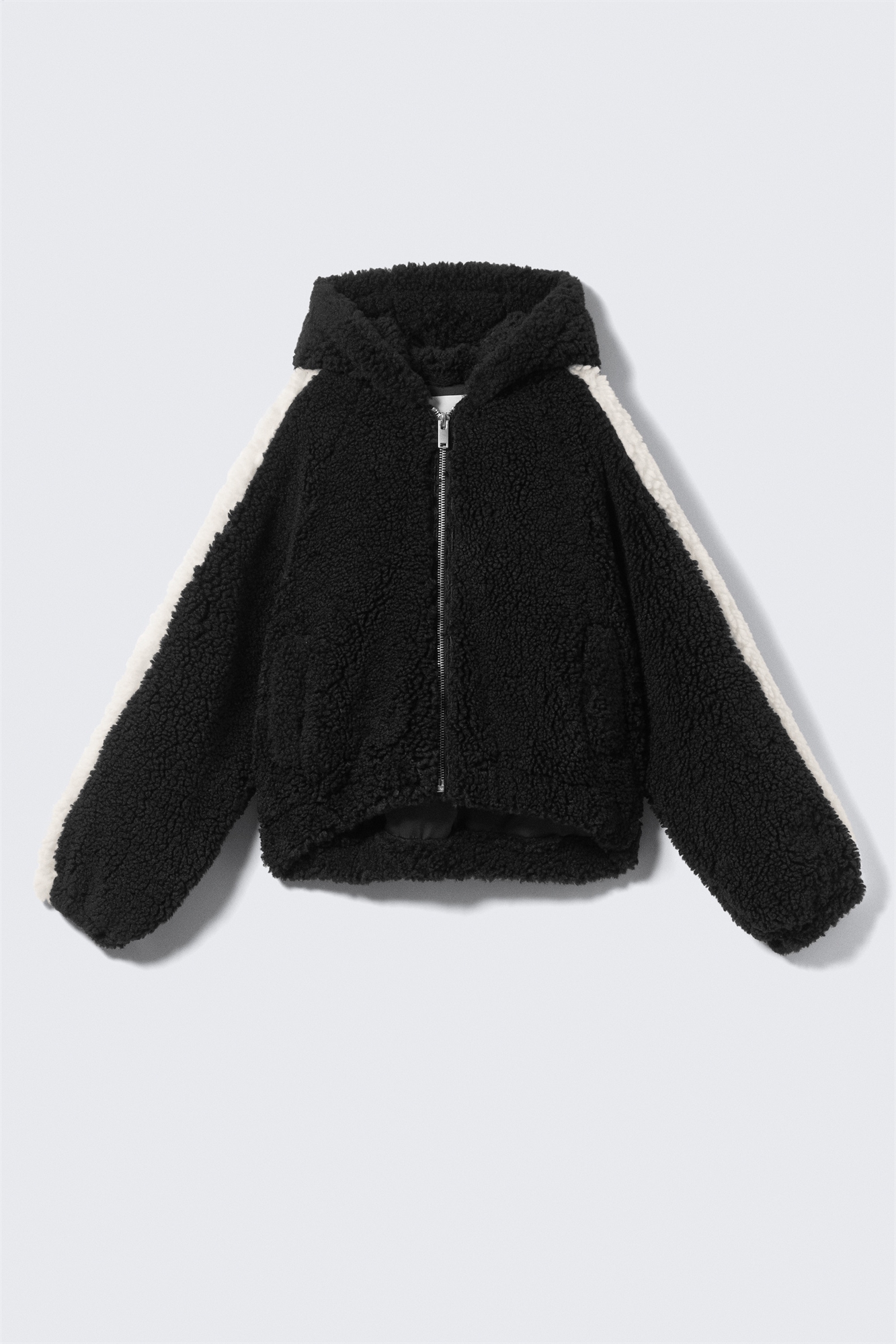 Трикотажная толстовка свободного кроя с длинными рукавами, полосками на руках и застежкой-молнией.