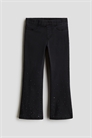 Джеггинсы из мягкого денима с украшениями. Эластичная резинка на талии, фальшивая ширинка, декоративные карманы спереди, открытые задние карманы и длинные ноги с расклешенными краями.