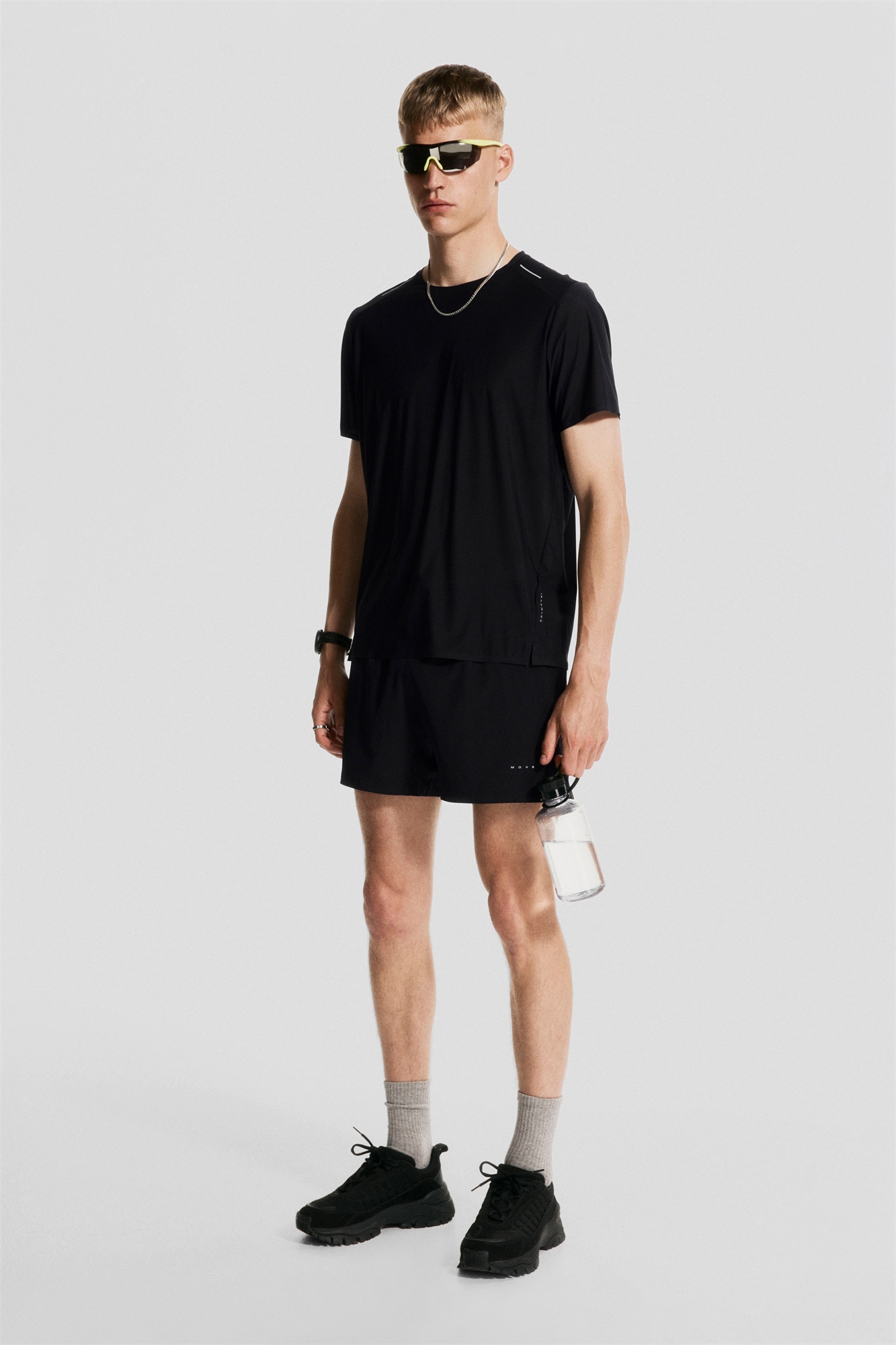 Короткие беговые шорты из функциональной ткани DryMove™, которая отводит влагу от кожи, обеспечивая комфортную сухость во время движения. Регулярный крой с закрытой эластичной отделкой и скрытым шнурком на талии. Незаметные боковые карманы на молнии и внутренние трусы из мягкой сетки. Небольшой разрез по бокам на подоле.