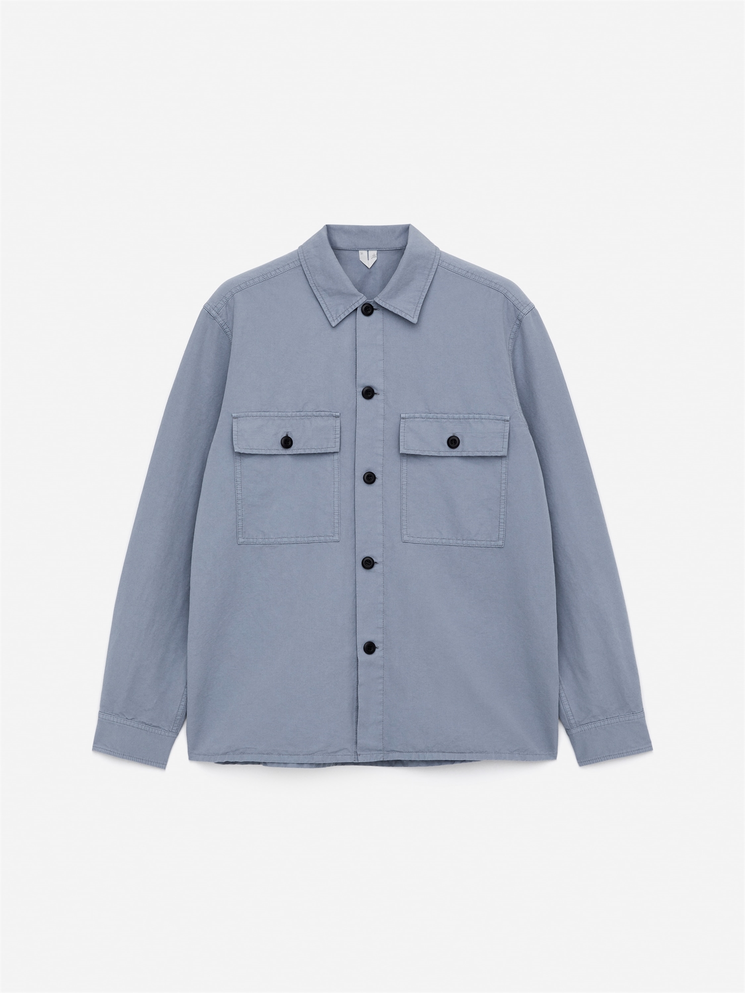 Свободная рубашка из хлопково-льняной смеси. С отложным воротником и двумя нагрудными карманами с клапанами на пуговицах. Задний ярмо. Манжеты на пуговицах. Прямой покрой подола.