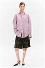 Рубашка оверсайз с непринужденным силуэтом. Изготовленная из мягкого хлопка, она имеет заостренный воротник, застежку на пуговицах и накладной карман на груди. Спущенные плечи, широкие манжеты и закругленный подол придают ей непринужденную форму.