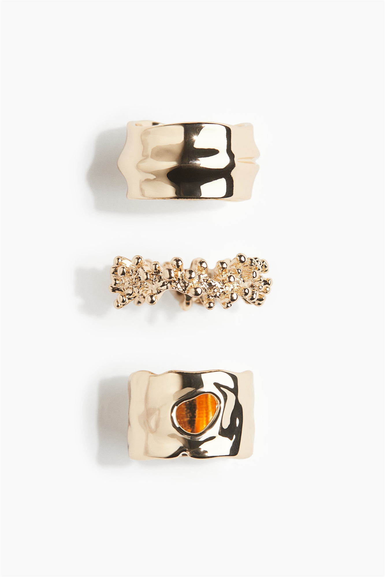Металлические кольца разного дизайна, одно из которых с асимметричным вырезом.