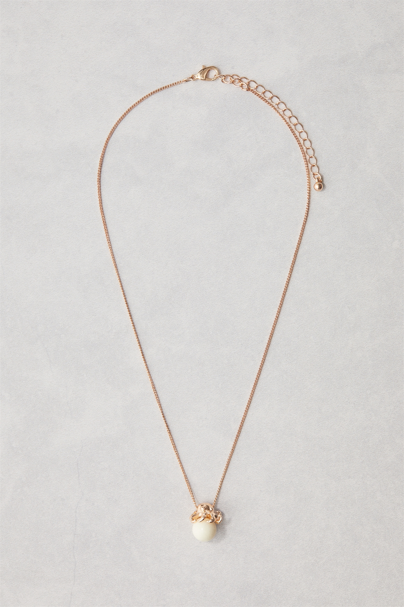 Ожерелье на металлической цепочке с подвеской в форме осьминога с пластиковой бусиной. Регулируемая длина с застежкой-триггером.