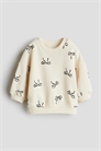 Топ из мягкой, легкой толстовки с принтом по всей поверхности. Круглый вырез в рубчик с завязками с одной стороны (кроме размеров 2-4Y), спущенные плечи, манжеты и подол в рубчик.