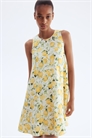 Короткое платье без рукавов из тканого материала с силуэтом A-line. Круглый вырез и отверстие для ключа с потайной пуговицей сзади. Без подкладки.