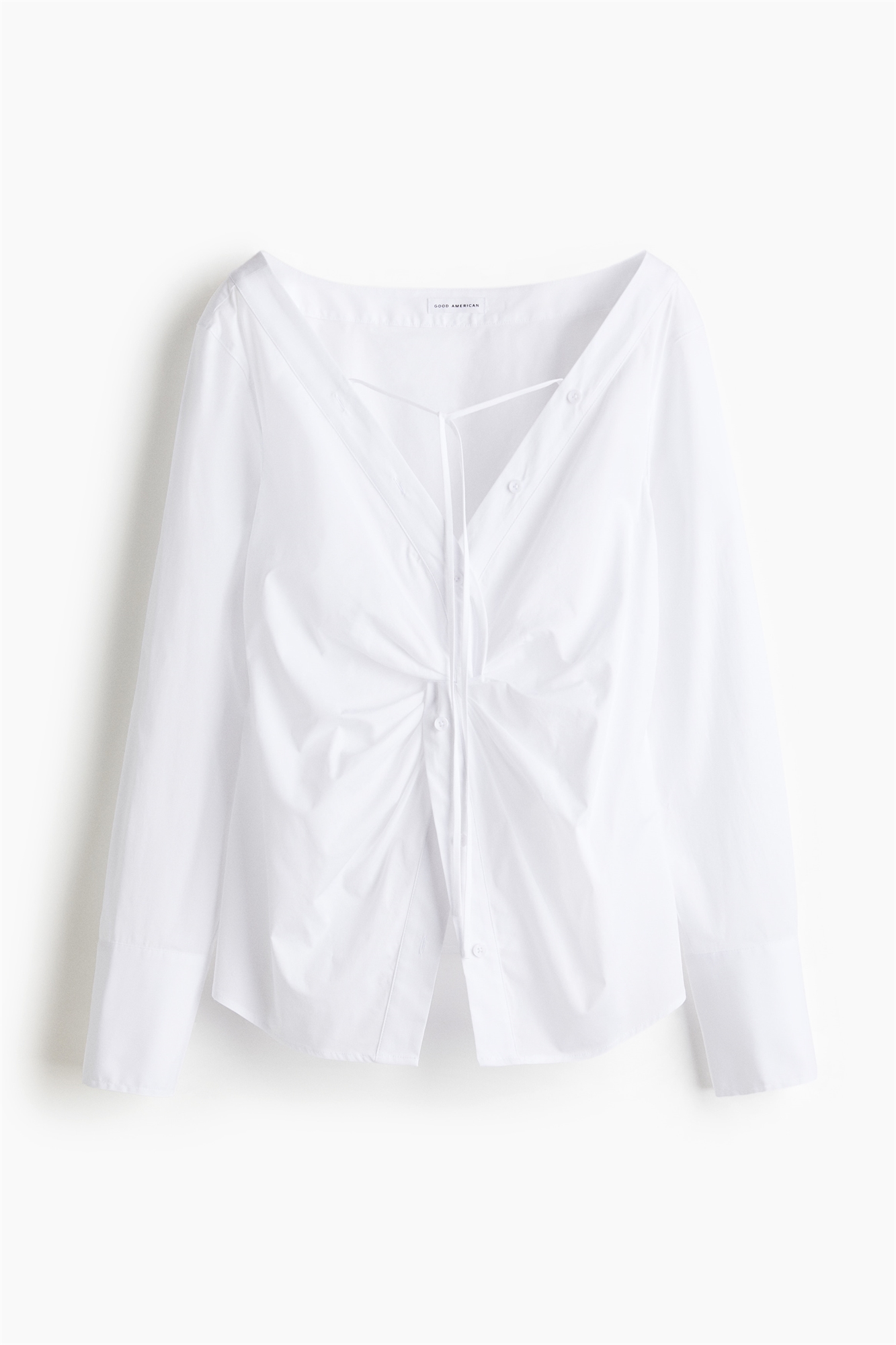 Топ с плечами из поплина придает ему воздушную текстуру с ноткой изысканности. Совершенно свежий и в то же время непринужденный - актуальная вещь для вашего гардероба.Вырез на плечахДлинные рукава
