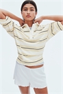 Рубашка-поло свободного покроя из хлопкового джерси с воротником и застежкой на пуговицы. Спущенные плечи, длинные рукава и прямой подол поло.