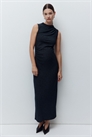 Облегающее платье-макси без рукавов из мягкого трикотажа с черепаховой горловиной. Плиссировка на одном плече и на противоположной стороне талии для создания эффекта драпировки.