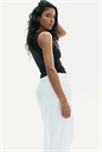 Короткий приталенный жилет-топ из мягкой микрофибры с вырезом-лодочкой и прямым покроем.