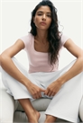 Короткая приталенная футболка из ребристого хлопкового джерси с глубоким квадратным вырезом и тонкой отделкой пико.