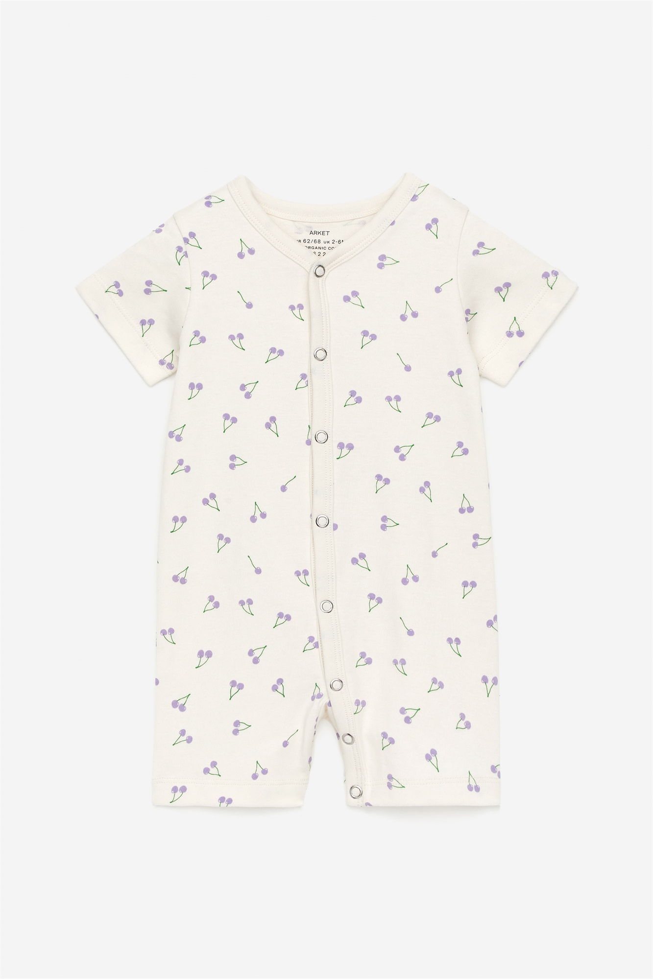 Пижама "все в одном" из мягкого трикотажа интерлок. Модель с короткими рукавами и короткими ножками. Застегивается на пуговицы с ног до головы для удобства одевания.