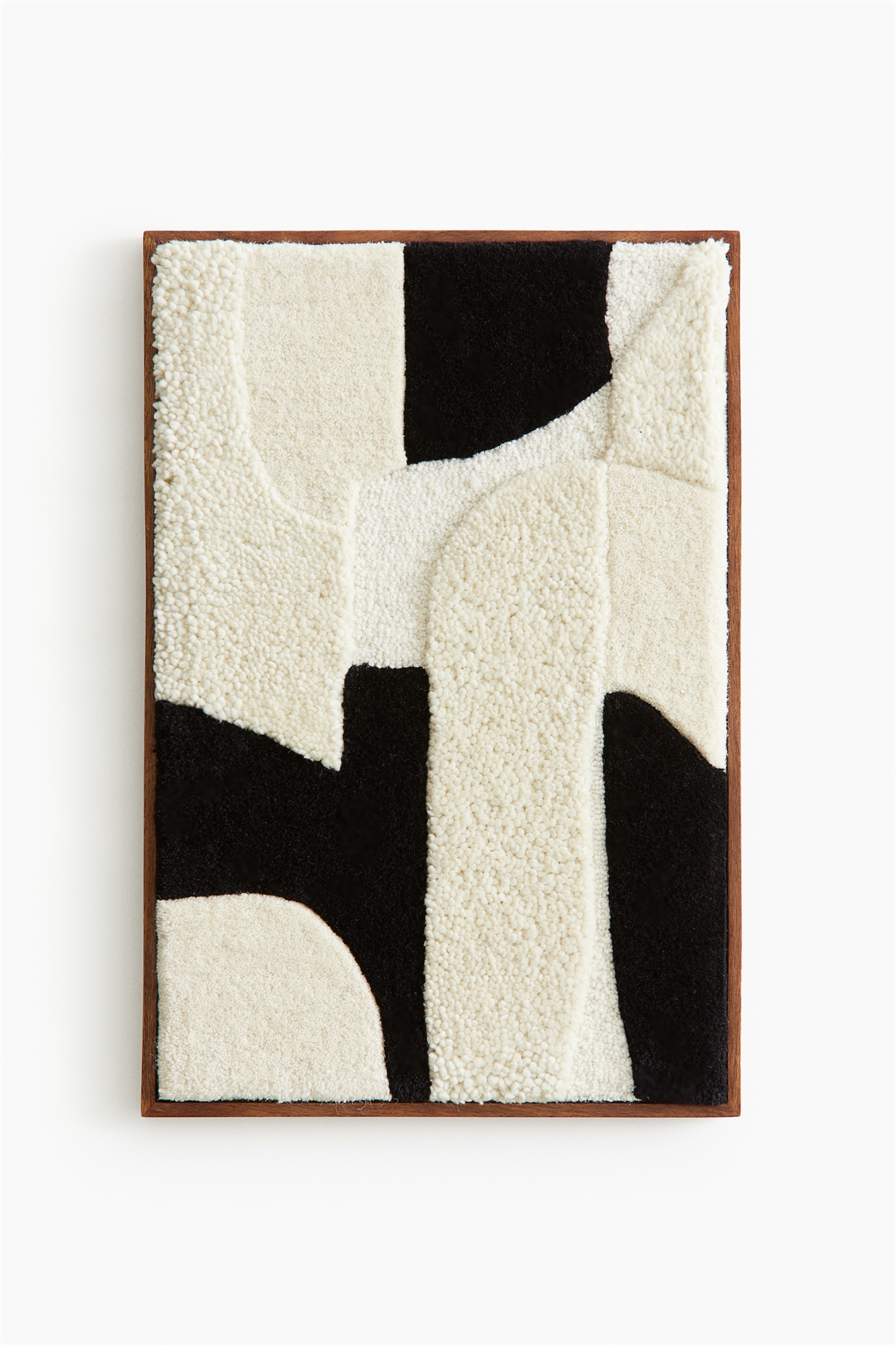 Настенное искусство, демонстрирующее сочетание техник тафтинга и плетения, создающее динамичные узоры и богатые текстуры. Обрамление из дерева с натуральной отделкой. Гвозди для подвешивания не входят в комплект.