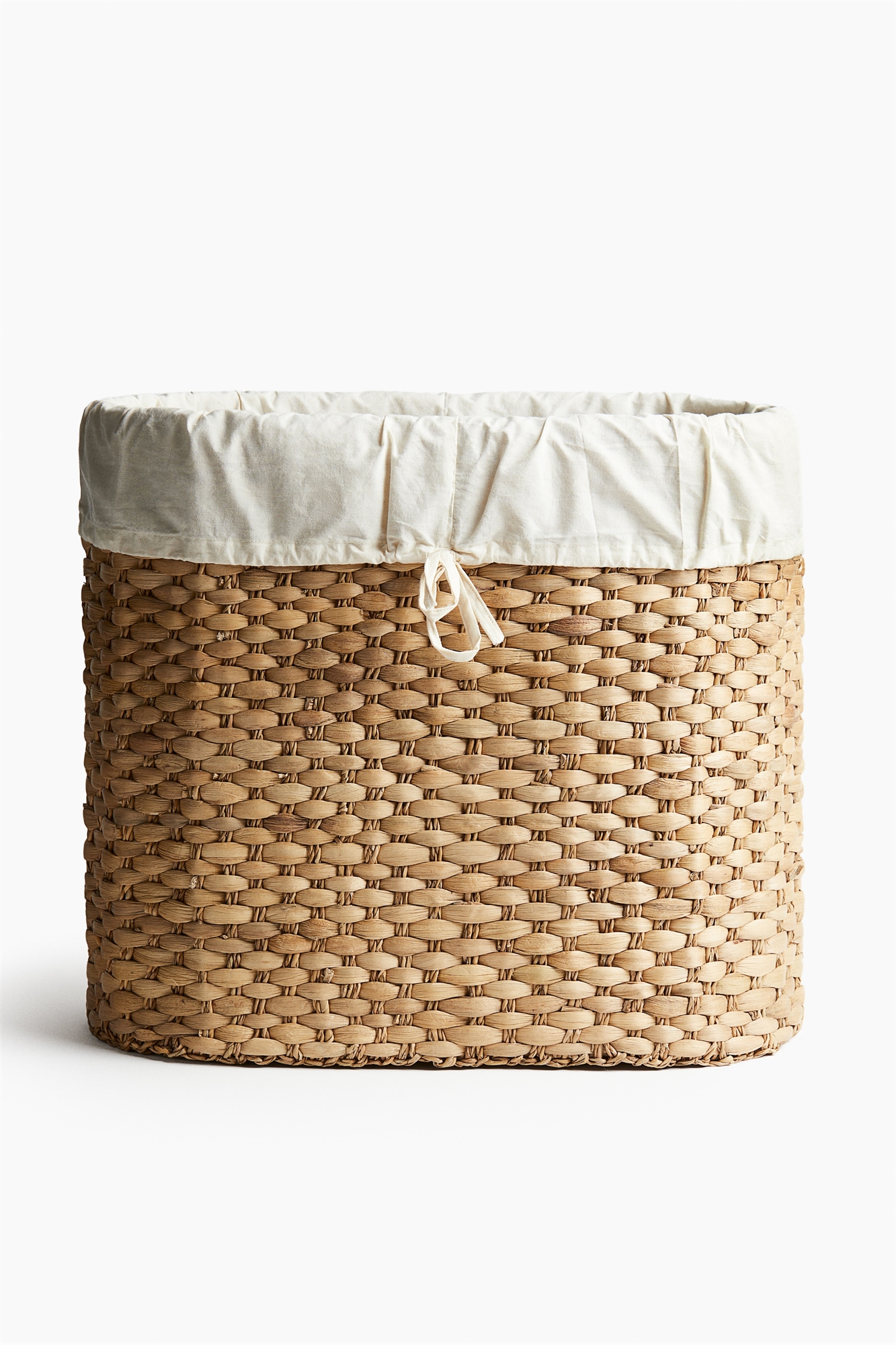 Корзина для белья ручной работы из соломы цвета водяного гиацинта со съемным мешком для стирки из хлопчатобумажной ткани с завязками.