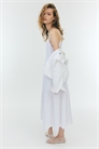 Свободное платье-макси из джерси с V-образным вырезом, бретелями-спагетти и ярусами для придания объема.