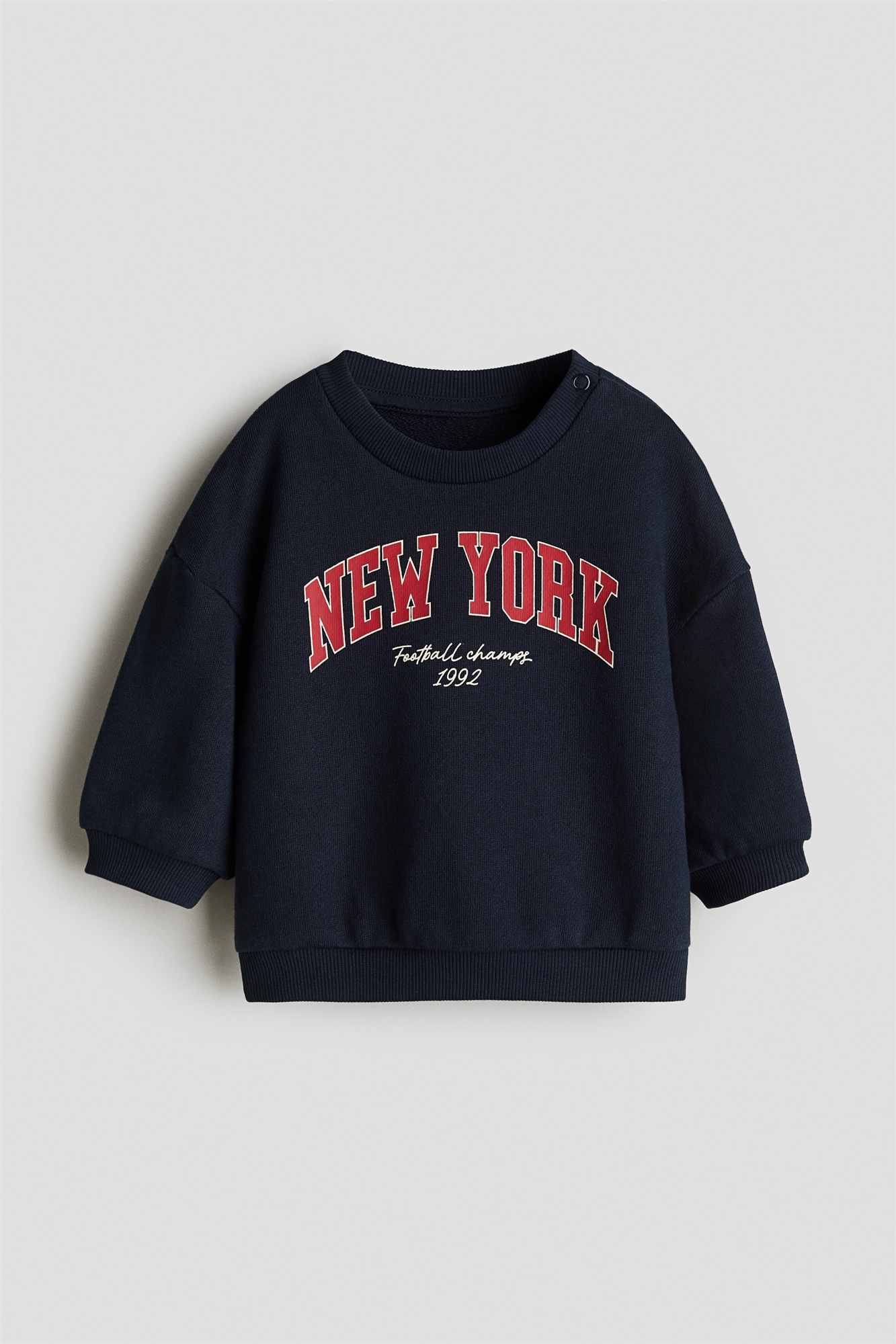 Топ из легкой толстовочной ткани с принтом. Круглый вырез в рубчик с застежками с одной стороны (кроме размеров 2-4Y), спущенные плечи, манжеты и подол в рубчик.