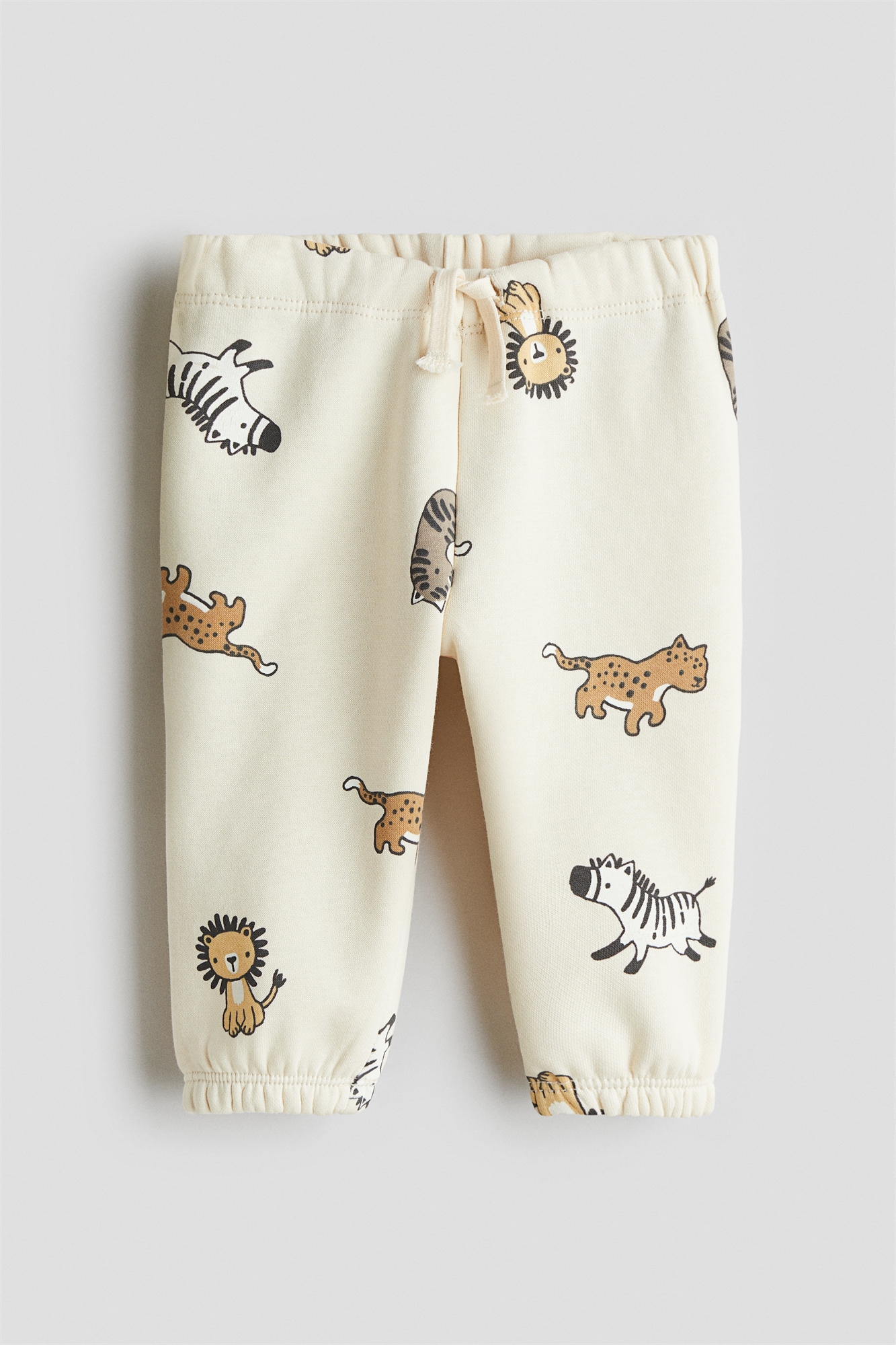 Джоггеры из принтованной толстовочной ткани с мягкой ворсистой внутренней стороной. Регулируемая эластичная талия с декоративным шнурком и эластичными вставками по краям.