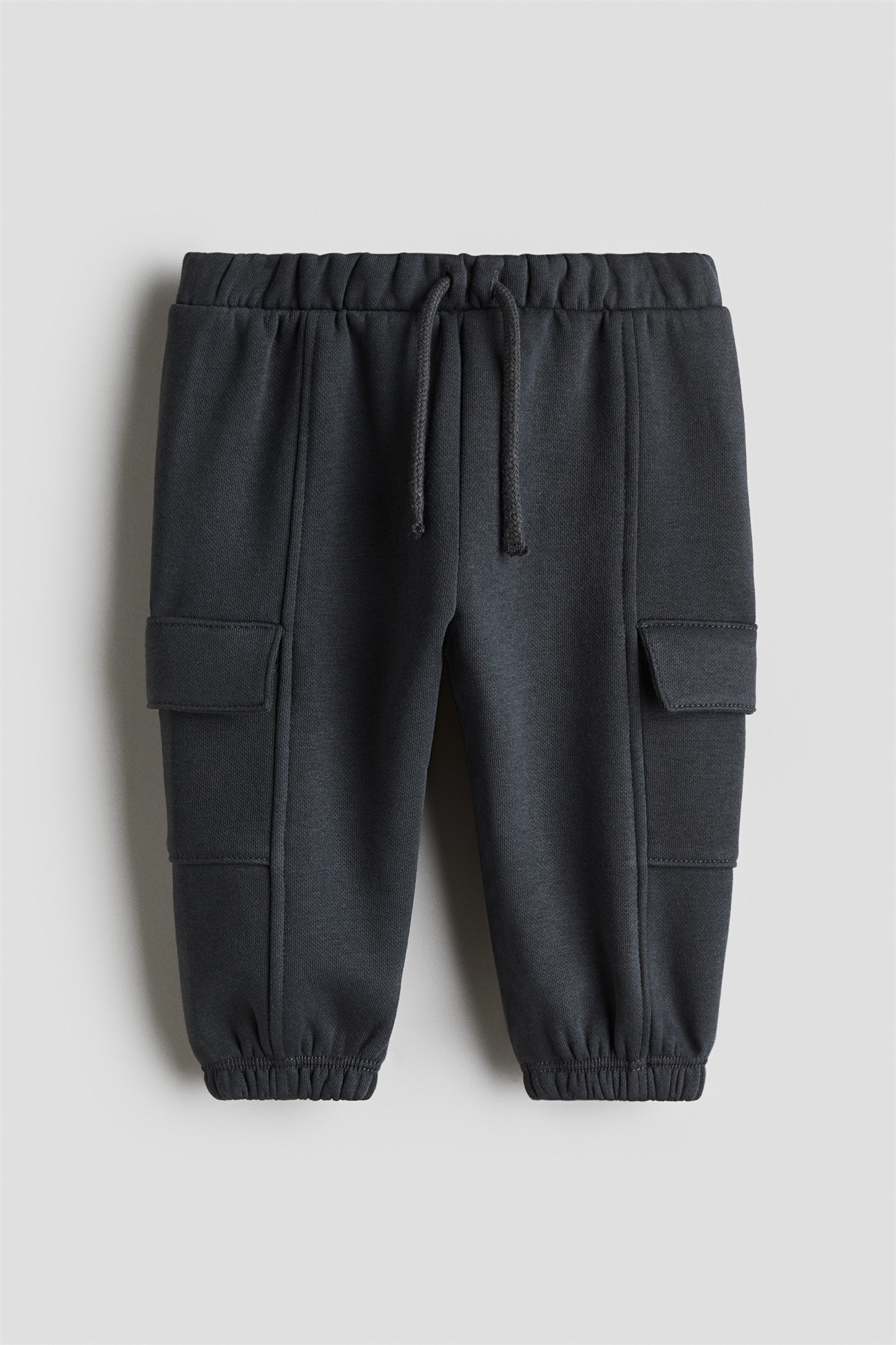 Джоггеры в стиле карго из толстовочной ткани с мягкой ворсистой внутренней стороной и деталями застежки. Регулируемый эластичный пояс с декоративным шнурком, накладные карманы на ногах и эластичная резинка по краям.