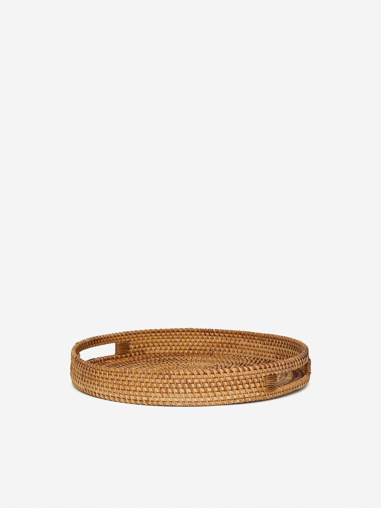 Круглый поднос из ротанга. Ручки для удобной переноски. Диаметр 40 см, высота 5,6 см.